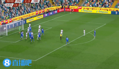 第92分钟,意大利扩大比分!迪马尔科右路传到禁区后点小曼奇尼头球破门,意大利3-0以色列。↓
